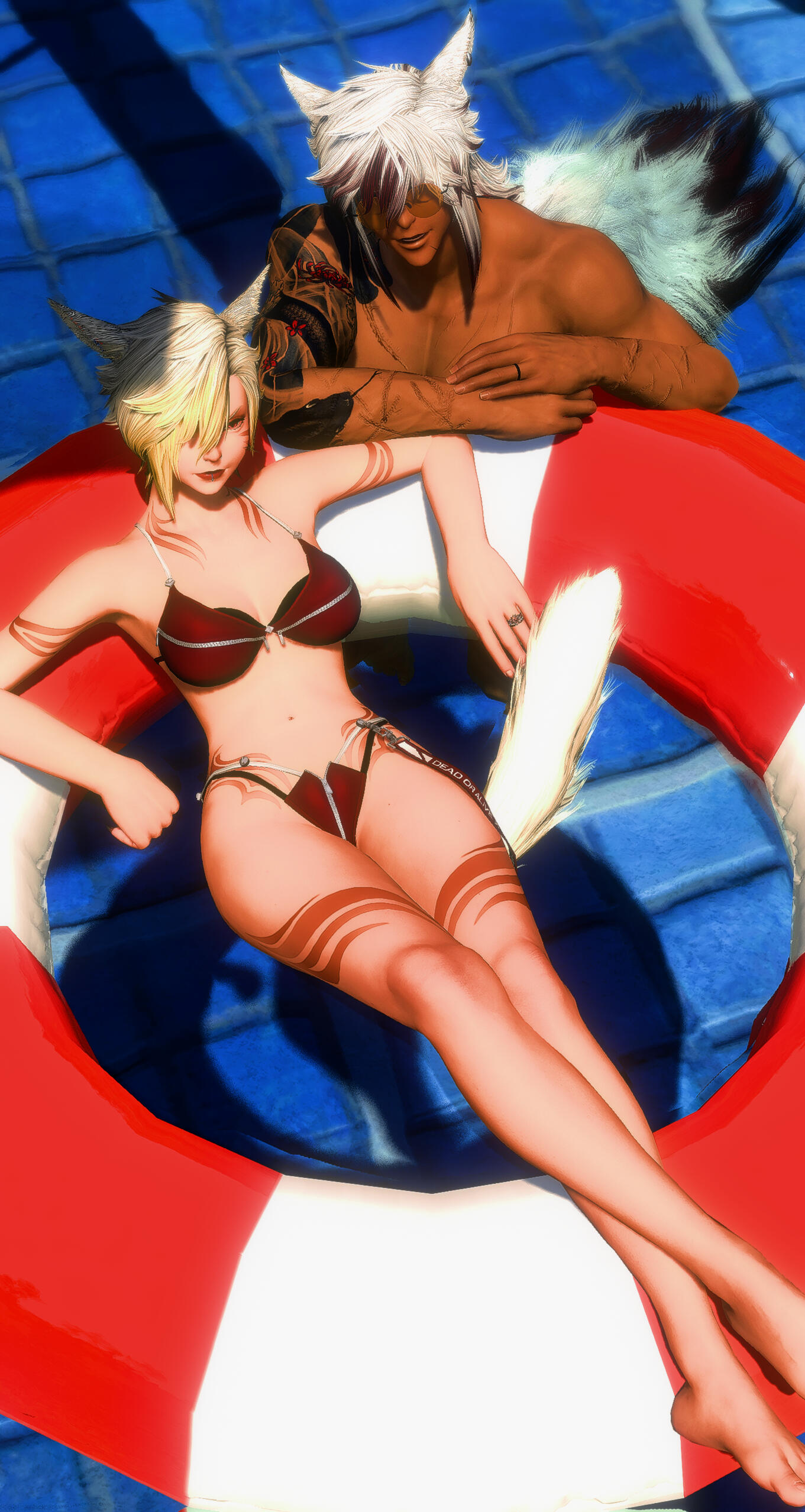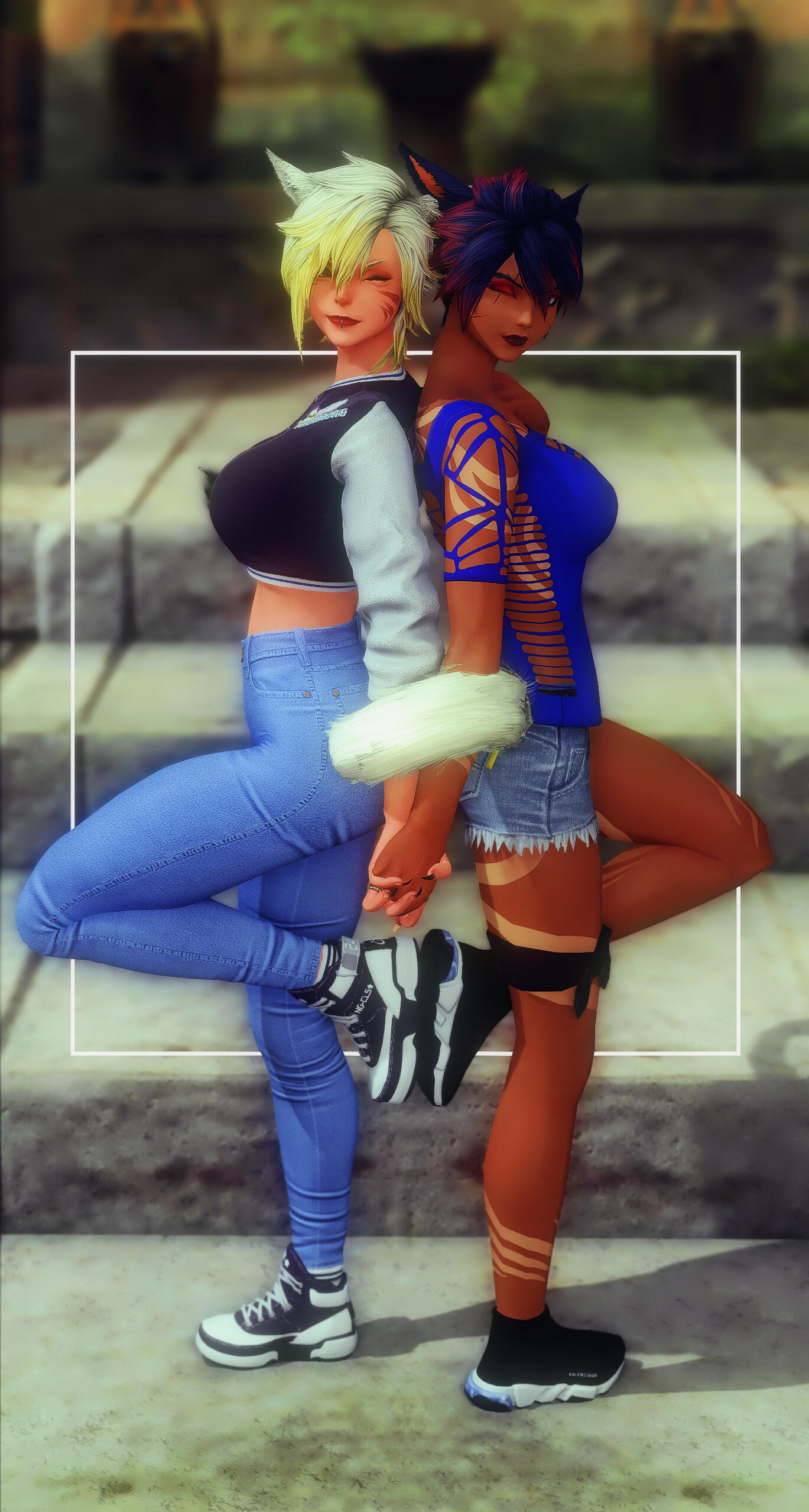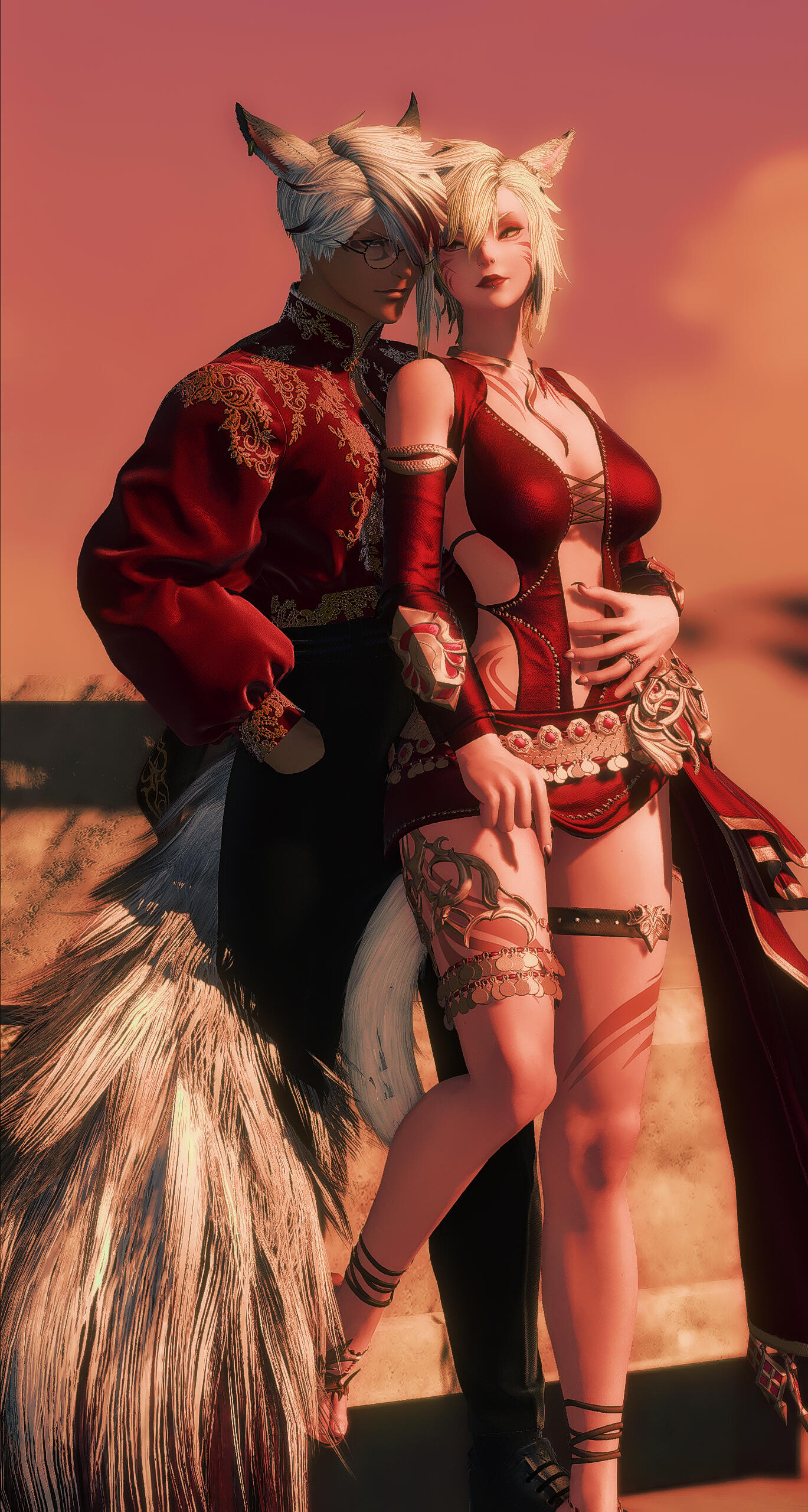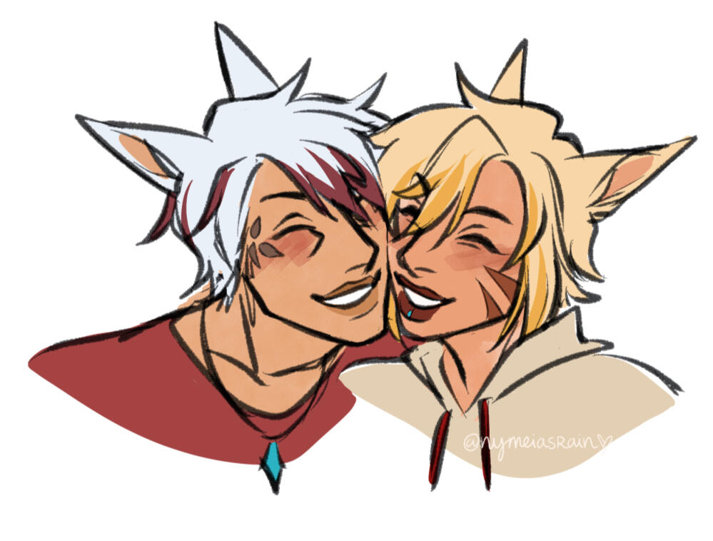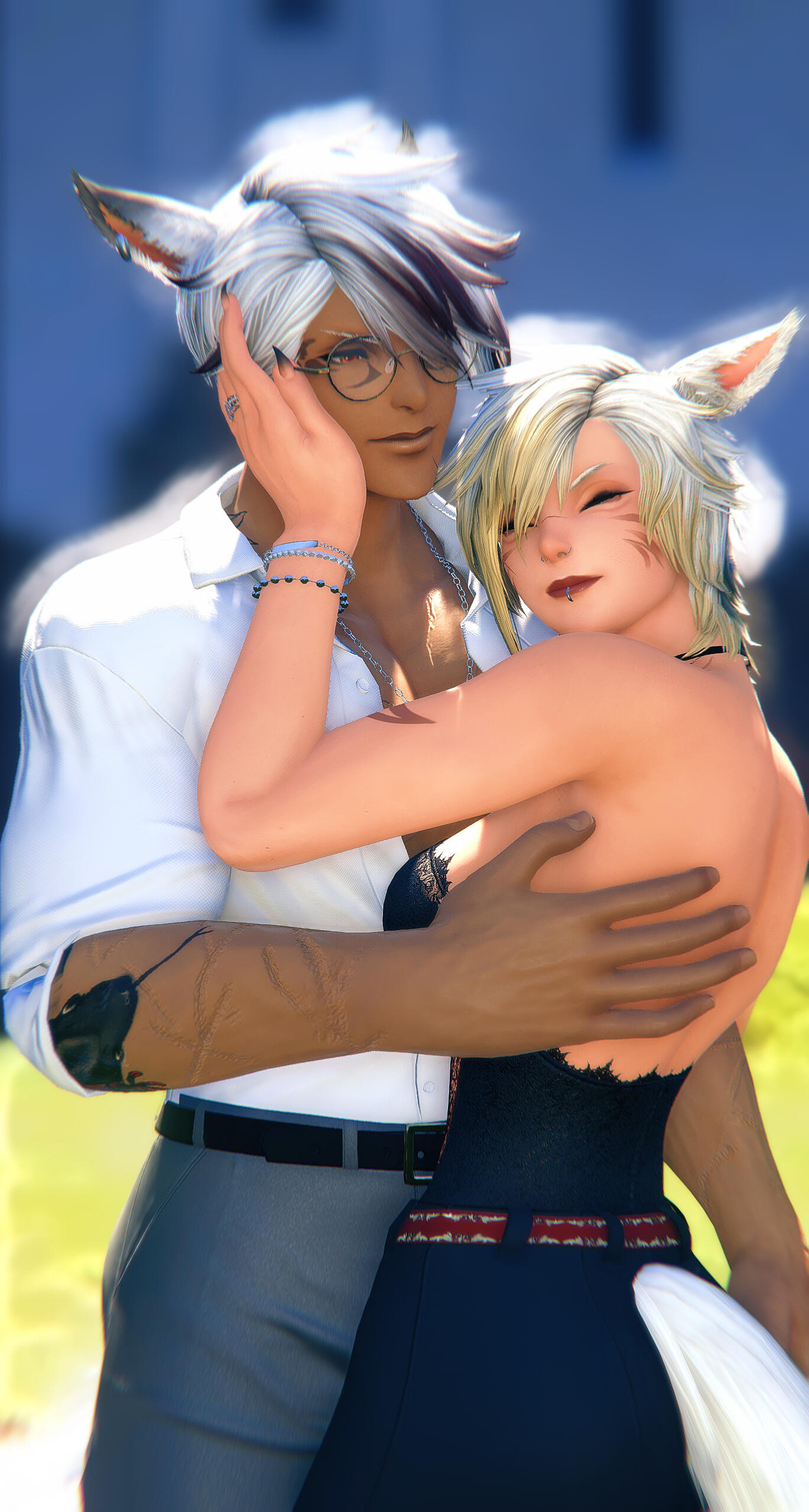 Despite the constant bickering, arguing, and in general acting like a married couple, these two go back to when K'has first arrived in Limsa all those years ago. A simple kind gestured on his end made him stuck with the Feline till the end of time. You'll catch them both playing Blitzball or supporting each other at other events.